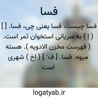 فسا. [ ف َ ] ( اِخ ) شهری است که مرکز شهرستان فسا و از قدیمترین شهرهای ایران است. بنای آن در زمان ساسانیان نهاده شده و اکنون تمام شهرستان دارای 170هزار تن سکنه است. از خرابه های شهر قدیمی فسا تپه ای به نام تل ضحاک در دوهزارگزی شهر کنونی باقی است که متعلق به دوره هخامنشی است. این شهر تا شیراز 164هزار گزفاصله دارد. آب مشروب شهر از دو رشته قنات و چاهها تأمین میشود. تعداد سکنه شهرنشین فسا از 8300 تن متجاوز است. ( از فرهنگ جغرافیایی ایران ج 7 ). حد شمالی این شهرستان اصطهبانات و حد شرقی دارابگرد، جنوبی جهرم و غربی خفر است. در 24هزارگزی این شهر در کوهی مجسمه هائی در سنگ تراشیده شده و ستونهایی در اطراف آن قرار دارد که مینماید در این محل یک معبد قدیمی بوده است. ( از جغرافیای سیاسی کیهان ). کوههای این ناحیه دارای معادن مس و فیروزه است. ( از جغرافیای اقتصادی کیهان ). آن را پسا نیز گویند و نسبت بدان فسوی است. ( یادداشت بخط مؤلف ). و نیز نسبت دیگر فسایی است ومنسوب بدان بصورت فساسیری و پساسیری هم آمده است.