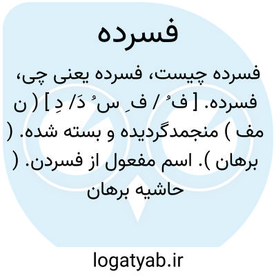 فسرده. [ ف ُ / ف ِ س ُ دَ/ دِ ] ( ن مف ) منجمدگردیده و بسته شده. ( برهان ). اسم مفعول از فسردن. ( حاشیه برهان چ معین ):