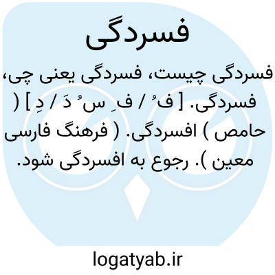 فسردگی. [ ف ُ / ف ِ س ُ دَ / دِ ] ( حامص ) افسردگی. ( فرهنگ فارسی معین ). رجوع به افسردگی شود.