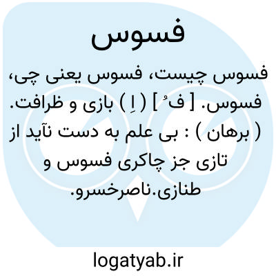 فسوس. [ ف ُ ] ( اِ ) بازی و ظرافت. ( برهان ):