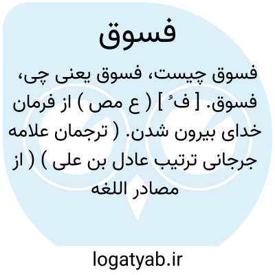 (فُ ) [ ع. ] ۱ - (مص ل. ) بیرون شدن از فرمان خدا. ۲ - (اِمص. ) انجام اعمال زشت و ناروا.