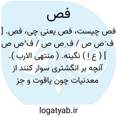 فص. [ ف َص ص / ف ِص ص / ف ُص ص ] ( ع اِ ) نگینه. ( منتهی الارب ). آنچه بر انگشتری سوار کنند از معدنیات چون یاقوت و جز آن. ( اقرب الموارد ). || پیوند استخوان. پیوند هر دو استخوان. مفصل. || پیوند کار. ج، فصوص.( منتهی الارب ). || اصل و حقیقت کار. ( از اقرب الموارد ). || سیاهی چشم. ( منتهی الارب )( اقرب الموارد ). || دانه سیر. ( منتهی الارب ). ج، اَفُص، فِصاص، فُصوص. ( از اقرب الموارد ).