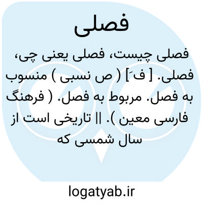 ( صفت ) ۱ - منسوب به فصل مربوط به فصل ۲ - تاریخی است از سال شمسی که به فصل تعلق دارد اما ماخذ آن تاریخ هجری قمری است. تفصیل این اجمال بدین منوال است که در عهد جلال الدین اکبر پادشاه هند در دفاتر تحصیل خراج هندوستان طرز جدید سیاق میرزایان ایرانی قرار یافت به جهت جمعیت اسلام. تاریخ سنبت بکر ماجیت که در دفاتر هند از قدیم معمول بود مندرج ساختند لیکن چون مدار تحصیل خراج بر فصول شمسی است لهذا تفاوت بسیار پیدا شد. در آن تاریخ که سال هجری قمری ۹۷۱ بود و اتفاقا در آن ایام مبدائ سال هجری که غره محرم باشد با ابتدای فصل پاییز و قرب زمان درجه اعتدال شب و روز که نزد هندوان یازدهم سنبله است - مطابق افتاد. از آن وقت سنین هجری را بدان قدر که گذشته بود فصلی نام نهاده آغاز سال از تحویل آفتاب به سنبله که تقریبا ابتدای ماه کورا و شروع هنگام درودن زراعت فصل پاییز باشد مقرر ساختند. چون سال تاریخ هجری که قمری بود در دفاتر تحصیل خراج به سبب تعلق فصل سال شمسی منتقل گردید و در دیگر مقدمات سال تاریخ هجری به دوازده ماه قمری به دستور سابق باقی ماند پس به مقابله تعداد ایام هر دو تاریخ در مدت دو سال و هشت ماه و شانزده روز چهار گهری زیادت یک ماه در شهور قمری پیدا گشت زیرا که سال شمسی ۳۶۵ روز و ربع روز است و درینجا مراد از روز مجموع روز و شب است که شصت گهر باشد. پس سال قمری کوتاهتر است از سال شمسی به ۱٠ روز و ۵۳ گهری و ۹ پل. بعد از انقضای مدت صد سال فصلی شمسی زیادت سه سال و چند روز بر سال هجری قمری پدید آید.