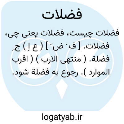 ۱ - ( اسم ) یکبار فضل ۲ - باقی مانده چیزی بقیه بازمانده جمع: فضلات فضال ۳ - سرگین پلیدی غایط.
