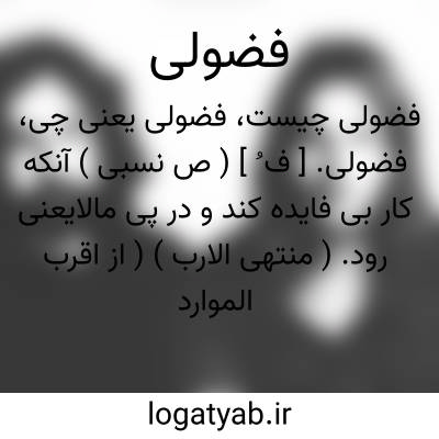 فضولی. [ ف ُ ] ( ص نسبی ) آنکه کار بی فایده کند و در پی مالایعنی رود. ( منتهی الارب ) ( از اقرب الموارد ). کسی که کار بیهوده کند. || آنکه بی جهت در امور دیگران مداخله کند، بدین معانی در فارسی «فضول » مستعمل است. ( فرهنگ فارسی معین ):
