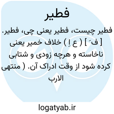 ( اسم ) ۱ - آنچه که زود ادراک شود چیزی که زود به دست آید ۳ - آرد سرشته ای که تخمیر نشده باشد مقابل خمیر یا نان فطیر. نانی که خمیر آن درست ور نیامده باشد. یا جشن ( عید ) فطیر. یکی از جشنهای یهودانست. یا بی مایه فطیر است. بدون مایه و سرمایه کار انجام نمی شود.
