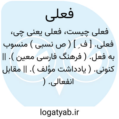 (فِ عْ ) [ ع. ] ۱ - (ص نسب. ) منسوب به فعل. ۲ - (ق. ) کنونی، مربوط به حال.