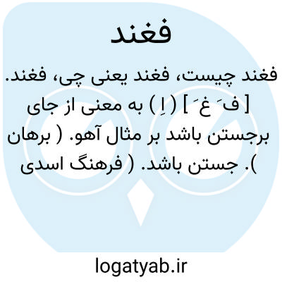 فغند. [ ف َ غ َ ] ( اِ ) به معنی از جای برجستن باشد بر مثال آهو. ( برهان ). جستن باشد. ( فرهنگ اسدی ). - آهوفغند؛ آنکه مانند آهو جست و خیز کند: هم آهوفغند است و هم تیزتک هم آزاده خوی است و هم تیزگام.فرالاوی.|| غریدن. ( مهذب الاسماء ).