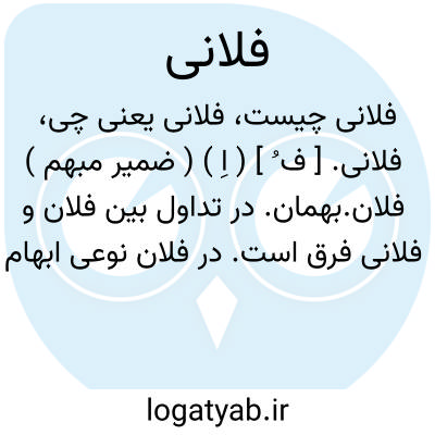 ( صفت ) فلان بهمان: بمیر ای حکیم از چنین زندگانی ازین زندگانی چو بمردی بمانی.... بجز مرگ در راه حقت که آرد زتقلید رای فلان و فلانی. در تداول بین فلان و فلانی فرقی است در فلان نوعی ابهام مندرج است اما اگر به کسی بگوید: از قول من بان آقا بگویید فلانی با شما کار دارد ابهام از میان می رود.