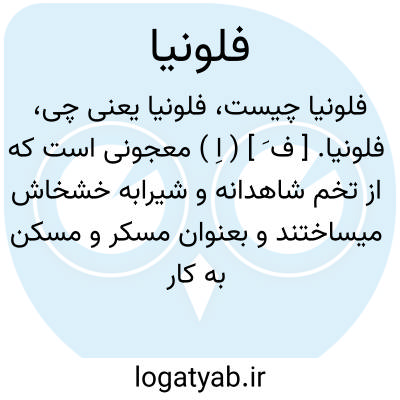 ( اسم ) معجونی است که تخم شاهدانه و شیرابه خشخاش می ساختند و به عنوان مسکر و مسکن به کار می رفته است فلونی. ۲ - نوعی معجون مسکن و مخدر منسوب به فیلون تارسی پزشکی از معاصرین اغسطس امپراتور روم که جهت تسکین درد دندان و دل به کار می رفته است فلونیا الرومیه.