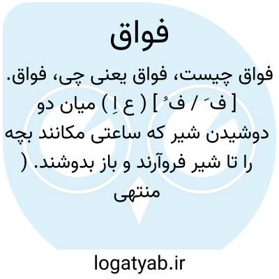 فواق. [ ف َ / ف ُ ] ( ع اِ ) میان دو دوشیدن شیر که ساعتی مکانند بچه را تا شیر فروآرند و باز بدوشند. ( منتهی الارب ). فاصله بین دو بار دوشیدن ناقه که در طی آن بچه شتر را وادار به مکیدن پستان کنند تا دوباره شیر آید و بدوشند. ( از اقرب الموارد ).