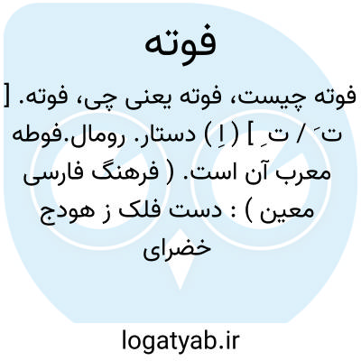 فوته. [ ت َ / ت ِ ] ( اِ ) دستار. رومال.فوطه معرب آن است. ( فرهنگ فارسی معین ):