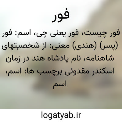 فور. ( اِخ ) نام رای کنوج است که یکی از رایان و پادشاهان هند باشد، و سکندر اورا کشت. ( برهان ). ظاهراً عنوان عمومی یک خانواده سلطنتی یا نام عمومی شاهان یک ناحیه است: