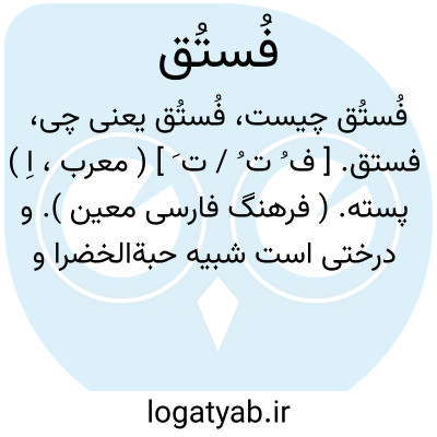 فستق. [ ف ُ ت ُ / ت َ ] ( معرب، اِ ) پسته. ( فرهنگ فارسی معین ). و درختی است شبیه حبةالخضرا و معرب پسته فارسی است. ( از اقرب الموارد ):