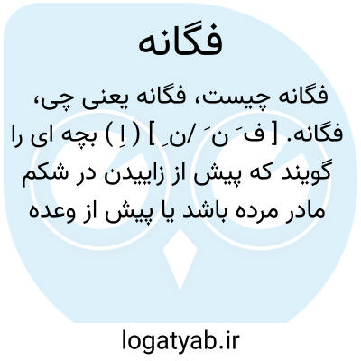 فگانه. [ ف َ ن َ /ن ِ ] ( اِ ) بچه ای را گویند که پیش از زاییدن در شکم مادر مرده باشد یا پیش از وعده ساقط شود خواه از انسان باشد و خواه از حیوان دیگر، و با کاف عربی هم گفته اند، و به کسر اول هم آمده است، و بجای نون میم دیده شده است که فکامه باشد. ( برهان ). آن را به تازی اسقاط و به پارسی فگانه گویند. ( ذخیره خوارزمشاهی ).