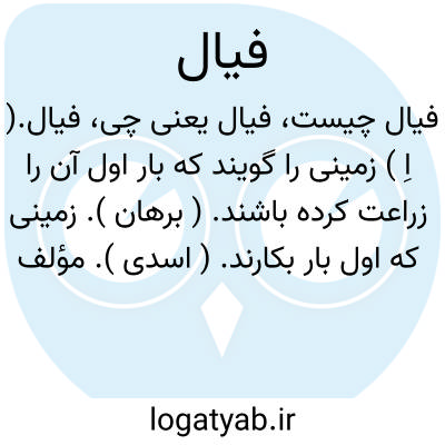 فیال.( اِ ) زمینی را گویند که بار اول آن را زراعت کرده باشند. ( برهان ). زمینی که اول بار بکارند. ( اسدی ). مؤلف نویسند: غلط است و معنی «ابتکار» دارد و در شعر بوشکور که شاهد اسدی است «از فیال » یعنی «ابتکاراً واز روی ابتکار». در حاشیه فرهنگ اسدی نسخه نخجوانی نوشته شده: بزبان به لخیان نخست بود و از فیال یعنی از اول، از نخست. ( یادداشتهای مؤلف ):