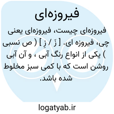 فیروزه ای. [ زَ / زِ ] ( ص نسبی ) یکی از انواع رنگ آبی، و آن آبی روشن است که با کمی سبز مخلوط شده باشد. ( فرهنگ فارسی معین ):