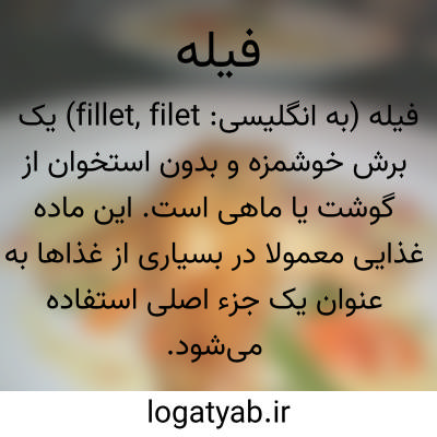 فیله. [ ل ِ ] ( فرانسوی، اِ ) گوشتی لطیف و لغزان که از آن مخصوصاً برای کباب استفاده کنند. ( فرهنگ فارسی معین ).