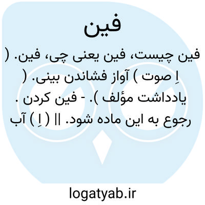 فین.( اِخ ) دهی است از دهستان جاپلق بخش الیگودرز شهرستان بروجرد که دارای 681 تن سکنه است. آب آن از چاه و قنات و محصول عمده اش غله، لبنیات، صیفی و کار دستی زنان قالی بافی است. ( از فرهنگ جغرافیایی ایران ج 6 ).