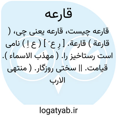 ۱ - ( اسم ) مونث قارع ۲ - سختی داهیه جمع: قوارع ۳ - رستاخیر قیامت.