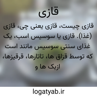 قازی (غذا). قازی یا سوسیس اسب، یک غذای سنتی سوسیس مانند است که توسط قزاق ها، تاتارها، قرقیزها، ازبک ها و سایر گروه های قومی عمدتاً در آسیای میانه، به ویژه غذاهای ترکی مورد استفاده قرار می گیرد. قازی یک عنصر مشترک و اصلی در تزئین دسترخوان ها می باشد. همچنین قازی یکی از غذاهای مرسوم قزاقستان و قرقیزستان است که از گوشت رنده ای اسب تهیه شده و با استفاده از روده حیوانات به شکل سوسیس تهیه می گردد. از ویژگی های این غذا این است که گوشت ها چرخ نمی شوند، بلکه به صورت رنده شده به شکل سوسیس درخواهند آمد. انواع مختلف این سوسیس می توان به سه صورت دودی خام، آب پز شده و خشک شده تهیه و استفاده کرد. در شمال قزاقستان، قازی تهیه شده از گوشت اسب را بیکنون می نامند.