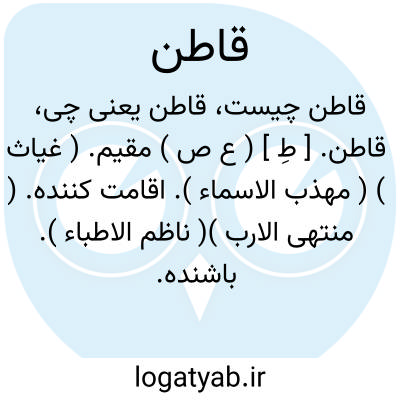 قاطن. [ طِ ] ( ع ص ) مقیم. ( غیاث ) ( مهذب الاسماء ). اقامت کننده. ( منتهی الارب )( ناظم الاطباء ). باشنده. متوطن. ( ناظم الاطباء ). || خادم. ج، قُطّان و قطین و قاطنة. ( ناظم الاطباء ) ( منتهی الارب ). خدمتکار. جج، قُطُن. ( ناظم الاطباء ).
