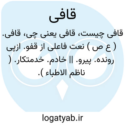 قافی. ( ع ص ) نعت فاعلی از قفو. ازپی رونده. پیرو. || خادم. خدمتکار. ( ناظم الاطباء ).