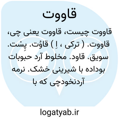 قاووت. ( ترکی، اِ ) قاوُت. پِسْت. سویق. قاود. مخلوط آرد حبوبات بوداده با شیرینی خشک. نرمه آردنخودچی که با قند نرم مخلوط کنند و گاه نرمه آرد لیمو و نرمه تخم هیل و از این قبیل بر آن افزایند.