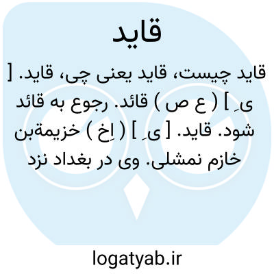 ۱ - ( اسم ) از جلو کشنده ستور مقابل سایق ( سائق ) ۲ - پیشوا راهبر پیشرو جمع: قواد قود قاده قایدین ( قائیدن ) ۳ - ( اسم ) سرهنگ سردار.