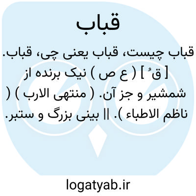 قباب. [ ق ُ ] ( ع ص ) نیک برنده از شمشیر و جز آن. ( منتهی الارب ) ( ناظم الاطباء ). || بینی بزرگ و ستبر. ( ناظم الاطباء ). بینی بزرگ و سطبر. ( منتهی الارب ).