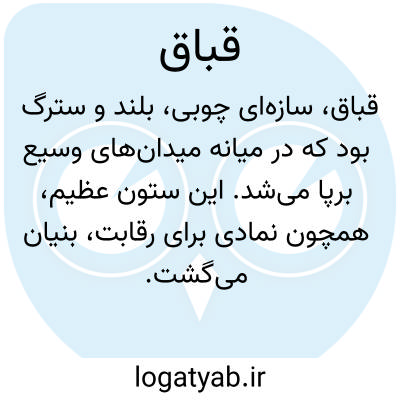 ( اسم ) چوبی بلند و عظیم که در میان میدانها نصب کنند و بر فراز - آن حلقه ای از طلا یا نقره وضع نمایند و سواران از یک جانب میدان اسب دوانیده بپای قباق که رسند همچنان که اسب در دویدن است تیر در کمان نهاده حواله حلقه کنند و هر کس که آن حلقه را بهتر زند حلقه از آن او باشد.