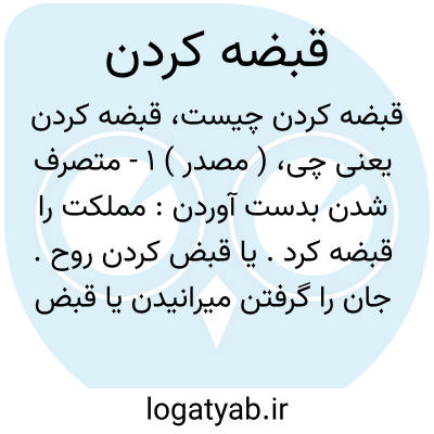 ( مصدر ) ۱ - متصرف شدن بدست آوردن: مملکت را قبضه کرد. یا قبض کردن روح. جان را گرفتن میرانیدن یا قبض کردن کار. در کف کفایت خود گرفتن کار را: با نرمش و سهولتی دلپسند که از موذی گری و پست نهادی خالی بود کارها را قبضه می کرد. ۲ - جذب کردن توجه کسان را بخود جلب کردن: با بیانات دلنشین خود همه اهل مجلس را قبضه کرده بود.