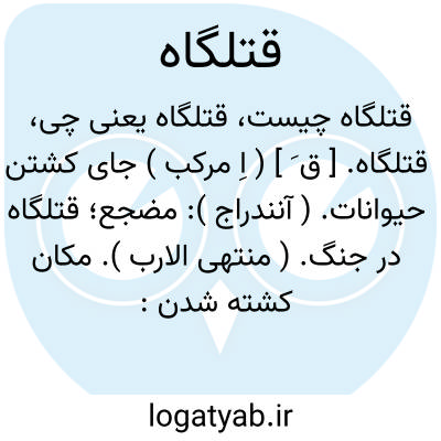 قتلگاه. [ ق َ ] ( اِ مرکب ) جای کشتن حیوانات. ( آنندراج ): مضجع؛ قتلگاه در جنگ. ( منتهی الارب ). مکان کشته شدن: به قتلگاه وفا تا شهید او نشدم دهان تیر بخندید و تیغ آب نخورد.علی خراسانی.چون محبان دگر لب تشنه همراه حسین کاش می بودم علی در قتلگاه کربلا.علی خراسانی ( از آنندراج ).