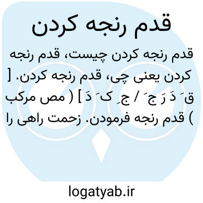 قدم رنجه کردن. [ ق َ دَ رَ ج َ / ج ِ ک َ دَ ] ( مص مرکب ) قدم رنجه فرمودن. زحمت راهی را تحمل کردن: توقع آن است که به وجه دمسازی و بنده نوازی قدم رنجه کنی. ( سندبادنامه ).