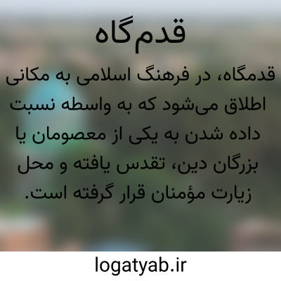 ( اسم ) ۱ - جای قدم نهادن جای گام ۲ - طهارت خانه مبال بیت الخلائ ۳ - جایی که پای پیامبری یا امامی و یا ولیی بدانجا رسیده باشد محلی که اثر پایی در سنگ و جز آن پدیدار است و گمان برند که جای پای پیامبری و یا امامی است. یا قدمگاه آدم. سراندیب ( زیرا که گویند حضرت آدم نخستین بار در روی زمین بدانجا قدم نهاد ).
