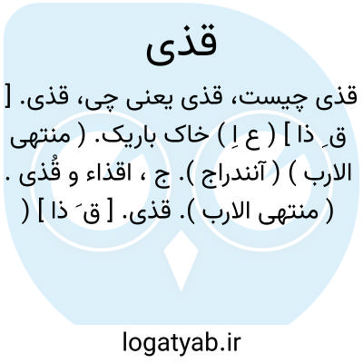 قذی. [ ق َ ذا ] ( ع اِ ) خاشاک. || خاشاک چشم. || خاشاک که در شراب افتد. || ریم و خون که از زهدان ناقه و جز آن رود پیش و پس زادن. ( منتهی الارب ) ( آنندراج ). || ( اِمص ) خواری و ستم. ( منتهی الارب ). گویند: هو یغضی علی القذی؛ او خاموش میماند در خواری و ستم. ( منتهی الارب ). || ( مص ) بیرون انداختن چشم خاشاک و خم را. || سپیدی افکندن بز از زهدان هنگام خواهانی گشن. ( منتهی الارب ) ( آنندراج ).