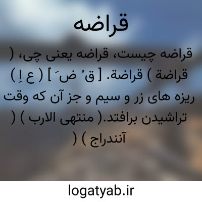 ( قراضة ) قراضة. [ ق ُ ض َ ] ( ع اِ ) ریزه های زر و سیم و جز آن که وقت تراشیدن برافتد.( منتهی الارب ) ( آنندراج ) ( ناظم الاطباء ):
