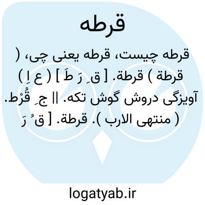 ( قرطة ) قرطة. [ ق ِ رَ طَ ] ( ع اِ ) آویزگی دروش گوش تکه. || ج ِ قُرْط. ( منتهی الارب ).