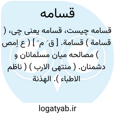 ( قسامة ) قسامة. [ ق َ م َ ] ( ع اِمص ) مصالحه میان مسلمانان و دشمنان. ( منتهی الارب ) ( ناظم الاطباء ). الهذنة بین العدو و المسلمین. ( اقرب الموارد ). ج، قسامات. ( ناظم الاطباء ) ( منتهی الارب ). || ( اِ ) جماعتی که سوگند خورند بر چیزی و بگیرند آن را و یا گواهی دهند. ( اقرب الموارد ) ( ناظم الاطباء ) ( منتهی الارب ). || سوگندهائی که تقسیم میشود بر اولیای قتیل چون ادعای خون کند بدون شاهد و بینه گویند: فلان قتل بالقسامة، و این را در صورتی گویند که اولیای آن قتیل بدون بینه و شاهد ادعای قتل بر کسی کنند، پس پنجاه سوگند میخورند که قاتل این قتیل فلان کس است، و این اشخاص را که سوگند خورده اند قسامة مینامند. ( ناظم الاطباء ). رجوع به باب دیات شرایع شود. || ( اِمص ) حُسن. ( اقرب الموارد ) ( منتهی الارب ). جمال. ( اقرب الموارد ) ( منتهی الارب ) ( ناظم الاطباء ).
