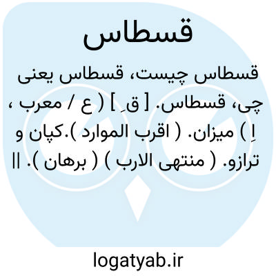 قسطاس. [ ق ِ ] ( ع / معرب، اِ ) میزان. ( اقرب الموارد ).کپان و ترازو. ( منتهی الارب ) ( برهان ). || راست تر ترازوها. ( منتهی الارب ). اقوم الموازین. ( اقرب الموارد ). || ترازوی عدل، هر ترازو که باشد. ( منتهی الارب ). میزان العدل ای میزان کان. ( اقرب الموارد ): و زنوا بالقسطاس المستقیم. ( قرآن 35/17 ). برخی گویند این کلمه عربی و مأخوذ از قسطبه معنی عدل است و گروهی آن را رومی معرب دانند. ( ازاقرب الموارد ) ( منتهی الارب ). رجوع به قُسطاس شود.