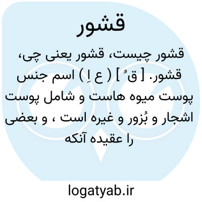 قشور. [ ق ُ ] ( ع اِ ) اسم جنس پوست میوه هاست و شامل پوست اشجار و بُزور و غیره است، و بعضی را عقیده آنکه آنها قابل هضم نیستندو غذائیت ندارند و این کلی نیست ولیکن بسیار قلیل الغذااند و بطی ءالهضم. ( از مخزن الادویه و فهرست آن ).