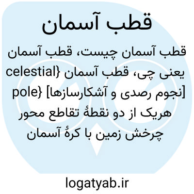 {celestial pole} [نجوم رصدی و آشکارسازها] هریک از دو نقطۀ تقاطع محور چرخش زمین با کرۀ آسمان (celestial sphere )