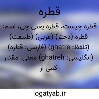 اسم: قطره (دختر) (عربی) (طبیعت) (تلفظ: ghatre) (فارسی: قطره) (انگلیسی: ghatreh)