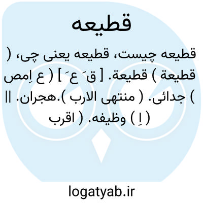 ( اسم ) ۱ - جدایی بریدگی ۲ - گله گاوان و گوسفندان ۳ - لشکر ۴ - قطعه ای از زمین و ممالک که بکسی واگذارند تا از آن امرار معاش کند اقطاعه جمع: قطائع ( قطایع ).