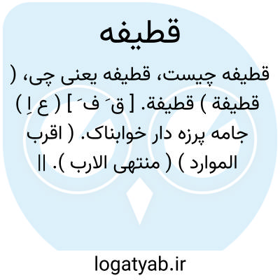 ( اسم ) ۱ - جامه پرداز خوابناک جمع: قطائف ( قطایف ). یا قطیفه حمام ( حمامی ). قطیفه که پس از بیرون شدن از گرمابه تن را بدان خشک کنند: مگر قطیفه حمامی است خلعت وصل که می دهد بعاشق بتان لاله عذار هنوز عاشق مسکین نکرده خشک عرق که باز در بر بیگانه ای گرفته قرار. ۲ - تاج خروس ۳ - گل جعفری.
