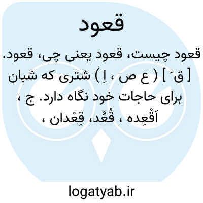 قعود. [ ق ُ ] ( ع مص ) نشستن. ( منتهی الارب ). یا قعود نشستن از قیام است و جلوس نشستن از ضجعة و سجدة. ( اقرب الموارد ) ( منتهی الارب ). یقال: للقائم اقعد و للنائم اجلس. و در کلیات آمده که در جواب «ما یصنع فلان »، گویند یقعد، به معنی یمکث، خواه ایستاده باشد یا نشسته، و در قعود لبث و درنگ هست به خلاف جلوس و ازاینرو قواعدالبیت گویند نه جوالس البیت، و نیز گویند فلان جلیس الملک نه قعیدالملک. ( اقرب الموارد ). || برخاستن. و این از اضداد است. ( اقرب الموارد ) ( منتهی الارب ). || بازایستادن از حیض و زه و نکاح. گویند: قعدت المراءة قعوداً. ( منتهی الارب ). || قعدت عن الزوج؛ مایل نشد به شوهر. ( ناظم الاطباء ). || سینه بر زمین نهادن مرغ و مرد خوار. ( منتهی الارب ). سینه بر زمین نهادن مرد خوار. ( ناظم الاطباء ). || لازم گرفتن جای را. ( منتهی الارب ). || سال میان بارآوردن خرمابن. || آماده شدن برای کارزار. || به حریف و همدست خود توانستن. ( اقرب الموارد ) ( منتهی الارب ): قعد فلان بقربه؛ توانا شد بر همدست خود. ( ناظم الاطباء ). || تند گرفتن نهال خرما. ( اقرب الموارد ) ( منتهی الارب ). || ناکدخدا ماندن زن. ( منتهی الارب ) ( ناظم الاطباء ). || اهتمام کردن: قعد فلان للامر؛ اهتمام کرد فلان در آن کار. ( ناظم الاطباء ). || درنگی کردن. ( اقرب الموارد ) ( ناظم الاطباء ): قعد عن حاجته؛ تأخر عنها. ( اقرب الموارد ). قعد عن الامر؛ درنگی کرد درآن کار. ( ناظم الاطباء ). || صیروره و گردیدن. ( اقرب الموارد ) ( منتهی الارب ). قعد به معنی صار نیز آمده و عمل صار را میکند، چنانکه گویند: حدد شفرته حتی قعدت کأنها حربة؛ ای حتی صارت کالحربة، و گویند: ثوبک لاتقعد تطیر به الریح؛ ای احفظ ثوبک فلاتصیر الریح طائرة به. ( اقرب الموارد ). || شروع کردن: قعد یشتمنی؛ ای اقبل او طفق. ( اقرب الموارد ).