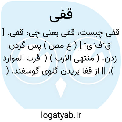قفی. [ ق َف ْی ْ ] ( ع مص ) پس گردن زدن. ( منتهی الارب ) ( اقرب الموارد ). || از قفا بریدن گلوی گوسفند. ( منتهی الارب ). رجوع به قَفْو شود.