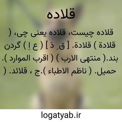 ( اسم ) آنچه بگردن آویزند گردن بند گلو بند جمع: قلائد ( قالاید ): و از آن عقدی ترتیب افتاد که قلاده جید دولت نظام الملکی... تواند بود.
