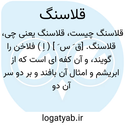 قلاسنگ. [ق َ س َ ] ( اِ ) فلاخن را گویند، و آن کفه ای است که از ابریشم و امثال آن بافند و بر دو سر آن دو ریسمان بندند و شاطران و شبانان بدان سنگ اندازند. ( برهان ) ( آنندراج ). رشیدی گوید: قلاسنگ و قلماسنگ و قلما، فلاخن باشد که بدان سنگ اندازند. ( حاشیه برهان چ معین ).