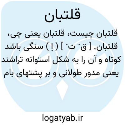 قلتبان. [ ق َ ت َ ] ( اِ ) سنگی باشد کوتاه و آن را به شکل استوانه تراشند یعنی مدور طولانی و بر پشتهای بام غلطانند تا پشت بام سخت و محکم گردد. ( برهان ). || ( ص ) بی غیرت و دیوث یعنی کسی که بر احوال قبیح زن خود واقف گردد و چشم پوشی نماید، و این مجاز است، در اصل قلتبان سنگی راگویند که مدور و دراز باشد و آن را بر بام نو ساخته میغلطانند تا هموار و محکم گردد، و شخص بی غیرت و بی حیا را از آن قلتبان گویند که چنانکه آن سنگ را در گردیدن اختیار نیست و اختیارش در دست گرداننده است همچنین او نیز محکوم زن خود است. و قرطبان معرب آن باشد. ( برهان ). قرطبان = قرتبان. رشیدی گوید: «قلته به معنی دیوثی است و قلتبان از آن مأخوذ است چه او نان دیوثی میخورد»، بنابراین مرکب است از قلت ( = قلته ) + بان ( پسوند اتصاف )، در عربی کلتبان، به معنی زن جلب و دیوث، آمده: